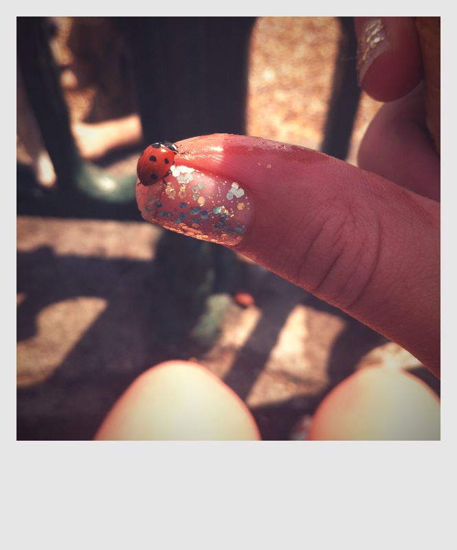 My new nails, loving the glitter! Don't usually paint my nails as they end up chipping after about 5 minutes of me making jewellery, but couldn't resist this one!They look so cool even a ladybird came to admire them!